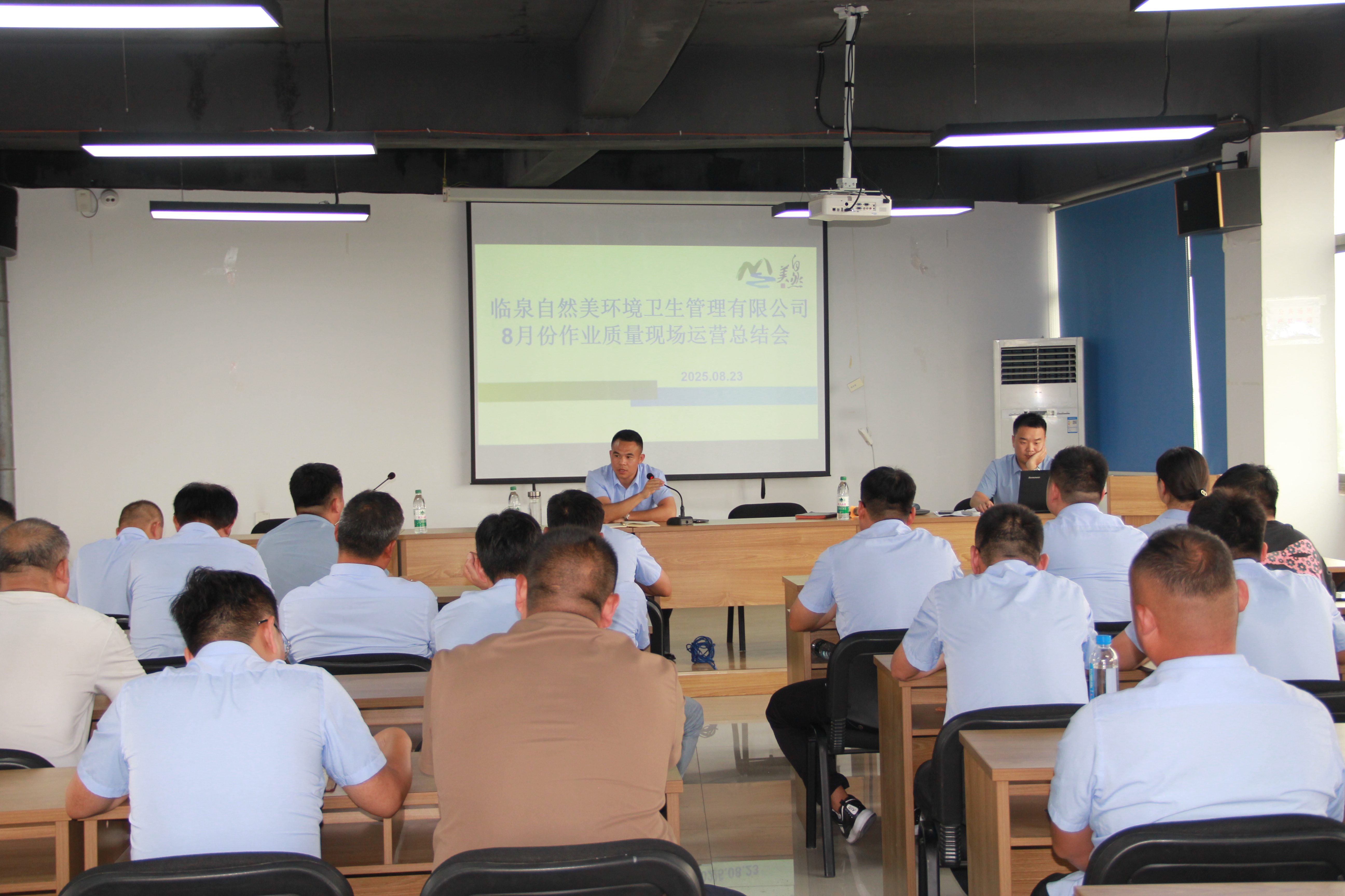 为全面掌握基层环卫运营实效,精准破解工作短板,近日,自然美环境科技有限公司临泉农村项目部组织召开 8 月份现场观摩会议,通过 “实地观摩+专题部署” 的形式,为后续服务提质增效锚定方向、压实责任。公司相关负责人及乡镇主管共同参会。