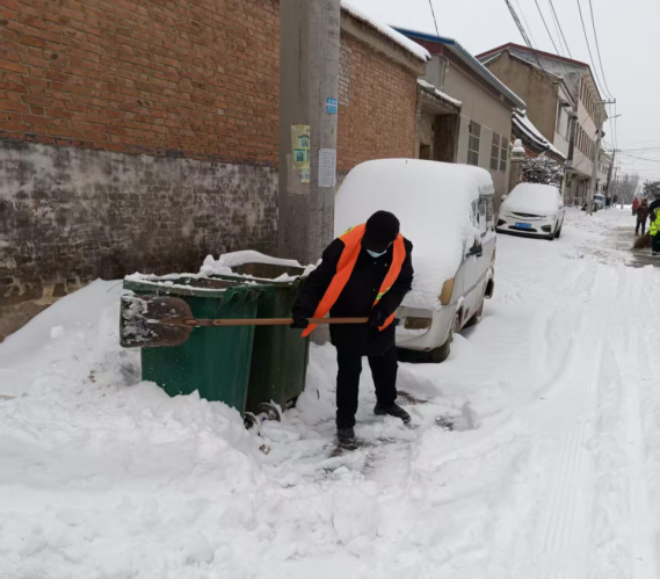 雪情就是命令,守护就是责任。环卫保洁员的身影穿梭在乡镇的街头巷尾、乡镇小道,他们用最朴实的行动,融化了路面积雪,温暖了人们的心田,用坚守诠释着基层环卫人的责任与担当。